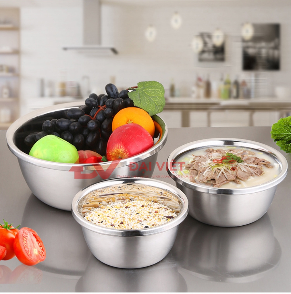 Cơ Khí Đại Việt Đơn Vị Hàng Đầu Trong Sản Xuất Và Gia Công Các Sản Phẩm Inox Gia Dụng gồm nồi inox, chảo inox, kệ inox, camen inox, thau inox, rổ inox, khay inox, chén inox và dụng cụ bếp. Chúng dành cho gia đình, nhà hàng, và bếp công nghiệp. Tất cả đều làm từ inox, chủ yếu là inox 304 và 430. Những loại này nổi bật với độ bền cao, khả năng chịu nhiệt tốt, và chống ăn mòn xuất sắc.
